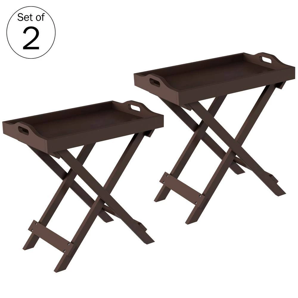 Bring the best of style and function to your home with the Foldable Side Table Set by Lavish Home. The modern, clean lines and chic style of each tray table can bring casual elegance to your home. The tables are constructed from sturdy manufactured wood with a 22-pound weight capacity each, and the raised lip around the removable tray tops help keep items in place. The trays lock in place on top of the table legswithout the neeDecor tools, and we’ve taken customer feedback to make the X-shaped support legs stronger by joining them with a screw instead of a dowel. Each foldable table can conveniently collapse when it’s not in use for easy storage, making it ideal for dorms, small apartments, anDecorner spaces. The versatile tv tray table set is ideal for displaying potted plants, art, or decor pieces; It can also serveas a stylish anDecortable serving, butler, or snack tray table.