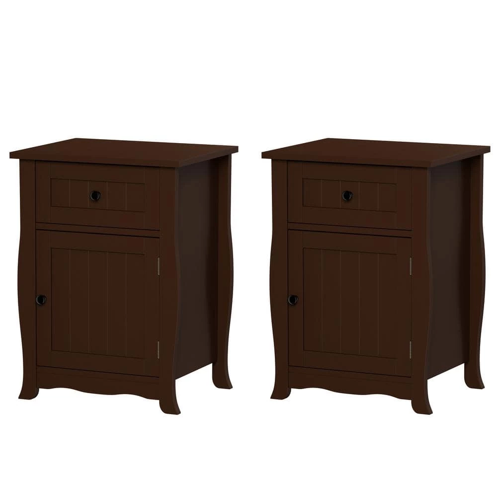 The Nightstands Set of 2 by Lavish Home are a beautiful and practical addition to your home decor. Blending traditional style and functionality, each bedside table features a handy pull-out drawer for remotes or glasses, a painted dark brown manufactured wood construction, and a lower cabinet for added storage. This side table with drawer set is great for displaying a pretty plant or picture frame in the living room, as a spot to set a snack plate and a coffee cup, or as a nightstand in your bedroom