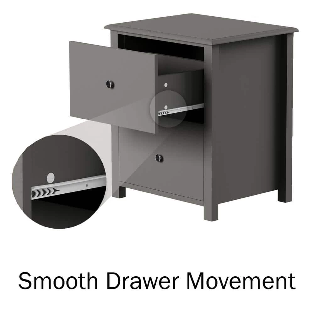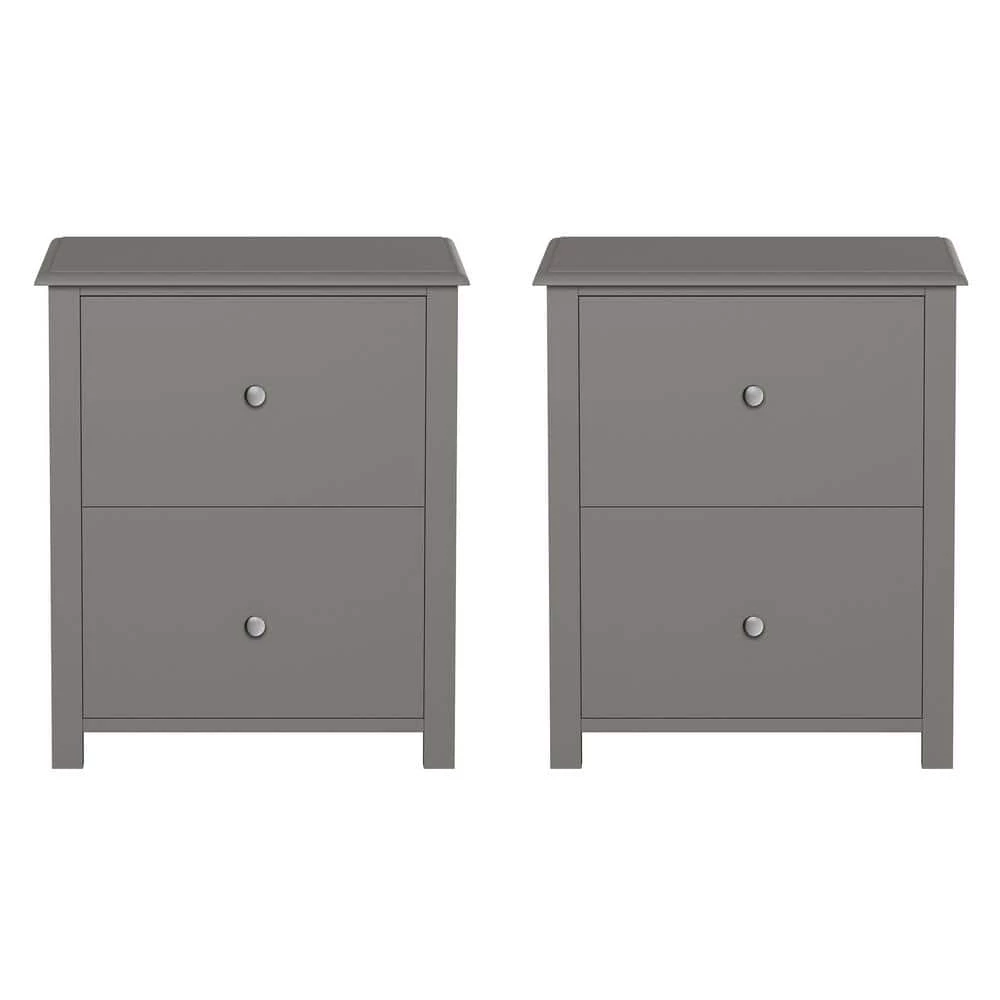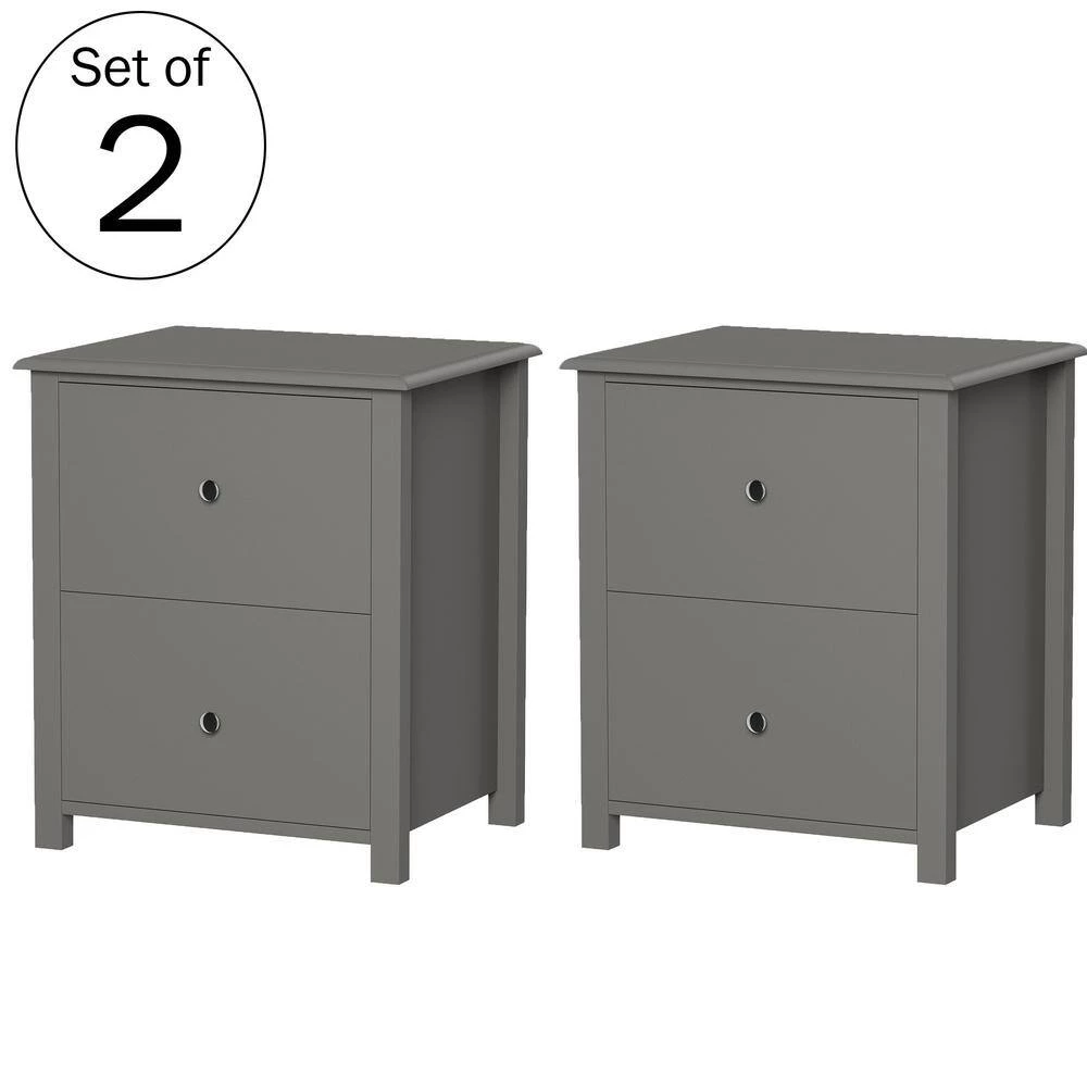 The End Table or Nightstands Set of 2 by Lavish Home is a beautiful and practical addition to your home decor. Blending traditional style and functionality, each end table features a sturdy manufactured wood construction with two pull-out drawers painted in a timeless slate gray. Each versatile accent table is great for displaying a pretty plant or picture frame, as a spot to set a snack plate and coffee cup, or as a bedside table. Use these side tables together in your living room, bedroom, or nursery, or separately for a cohesive style throughout your home.