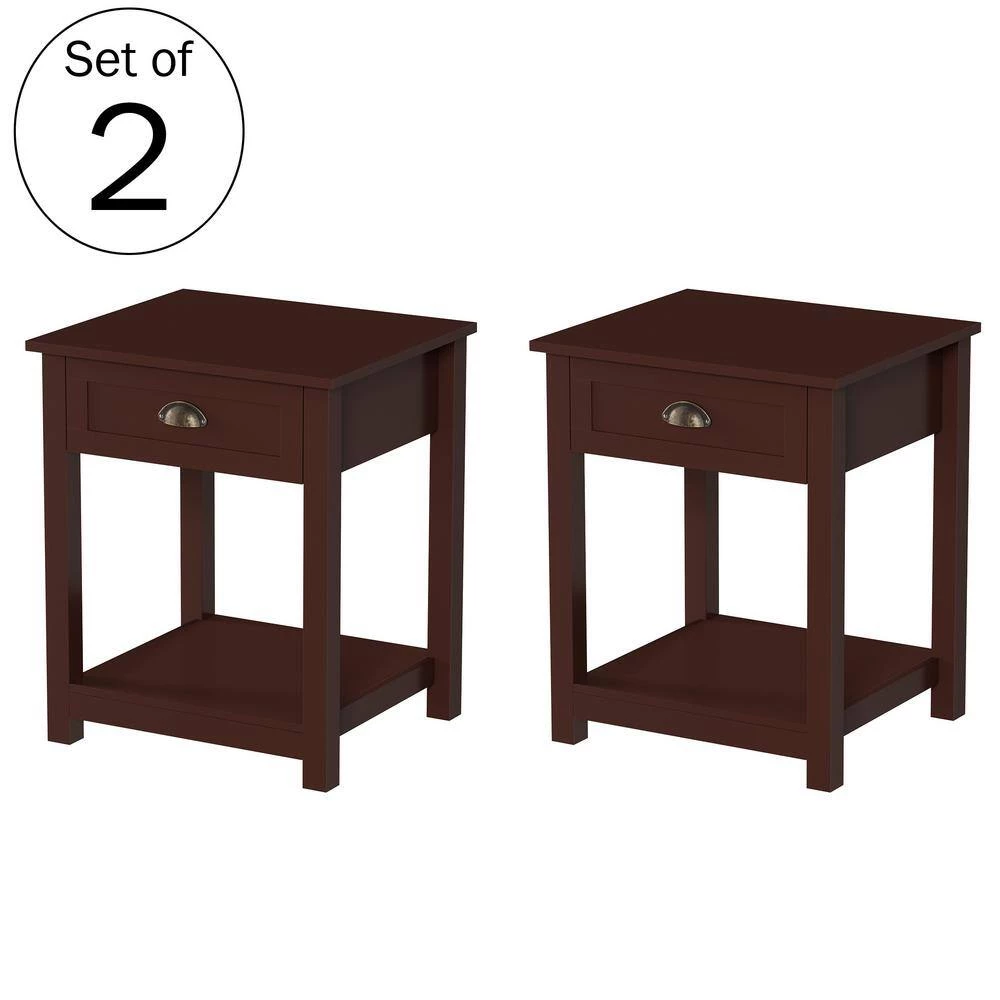 - END TABLES SET OF 2 – Blending classic shaker style and functionality, this umber brown nightstand or side table pair complements a variety of home furnishing styles. Use them as living room tables, in your home office, or by your bedside.