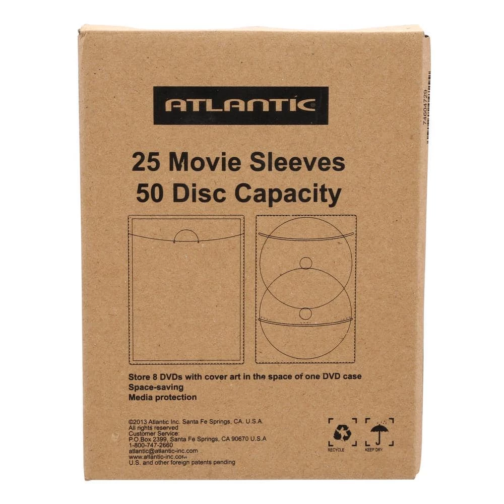 Atlantic, Inc. 74604729 Clear sleeves offer space-saving media protection. Each sleeve holds 2 discs with cover. Protects against scratches and dust. Throw away your bulky plastic cases.