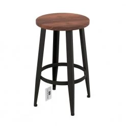 24 in. Vintage Backless Metal Counter Stools with Wooden Seat (Set of 2) by Lavish Home