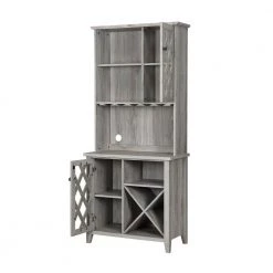 Home Source in Stone Grey Bar Cabinet Bookshelf with Wire Mesh Doors by Home Source Industries