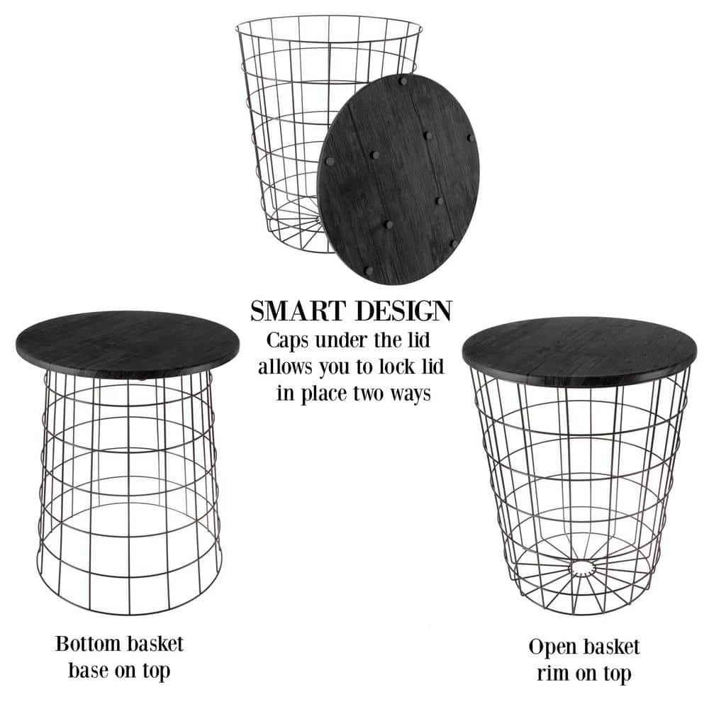- DECORATIVE STORAGE- This multifunctional set with table and storage basket all-in-one, can be used as a tray table, decorative basket, or storage bin. It has a removable lid and ample storage room in the basket for books, blankets, games, toys and more.