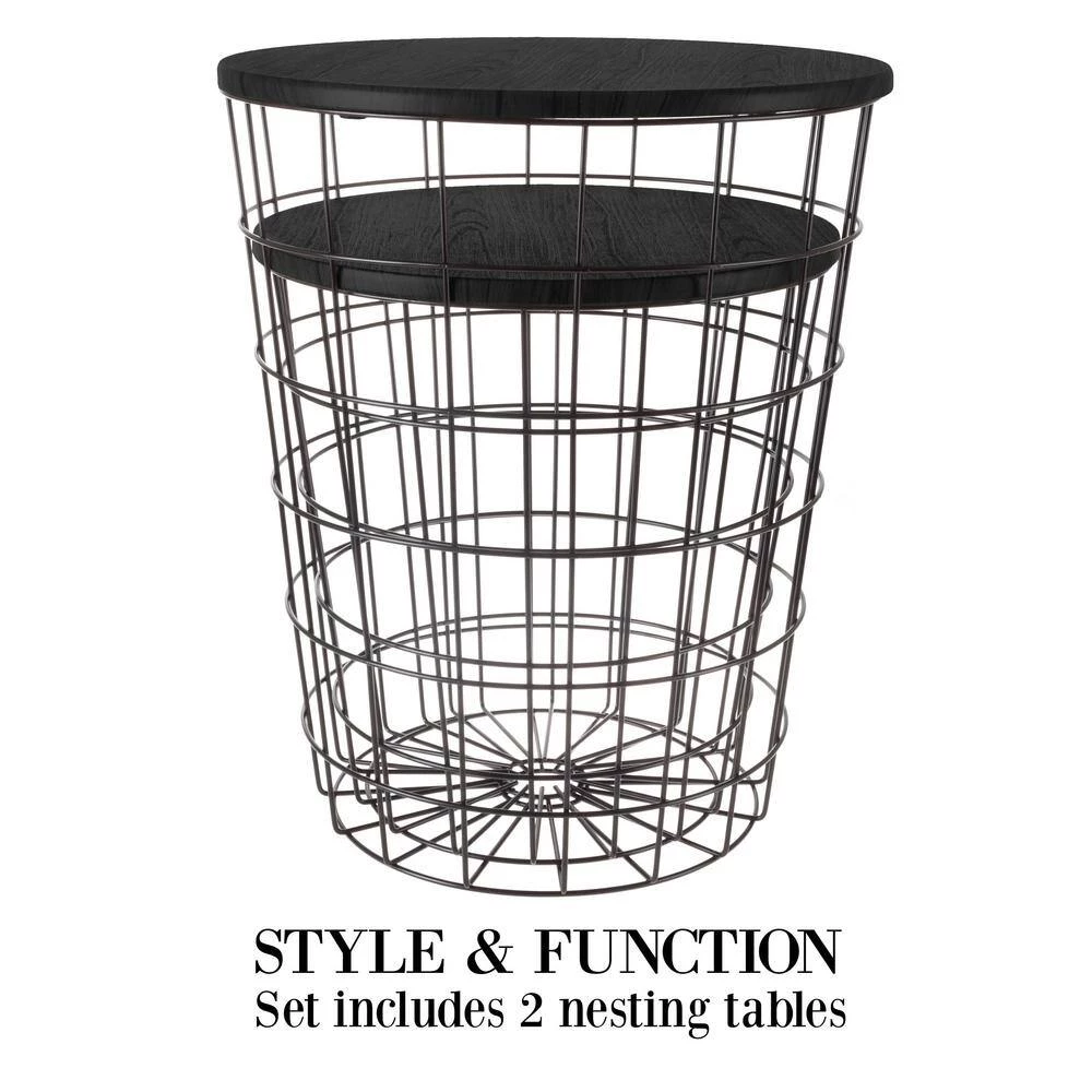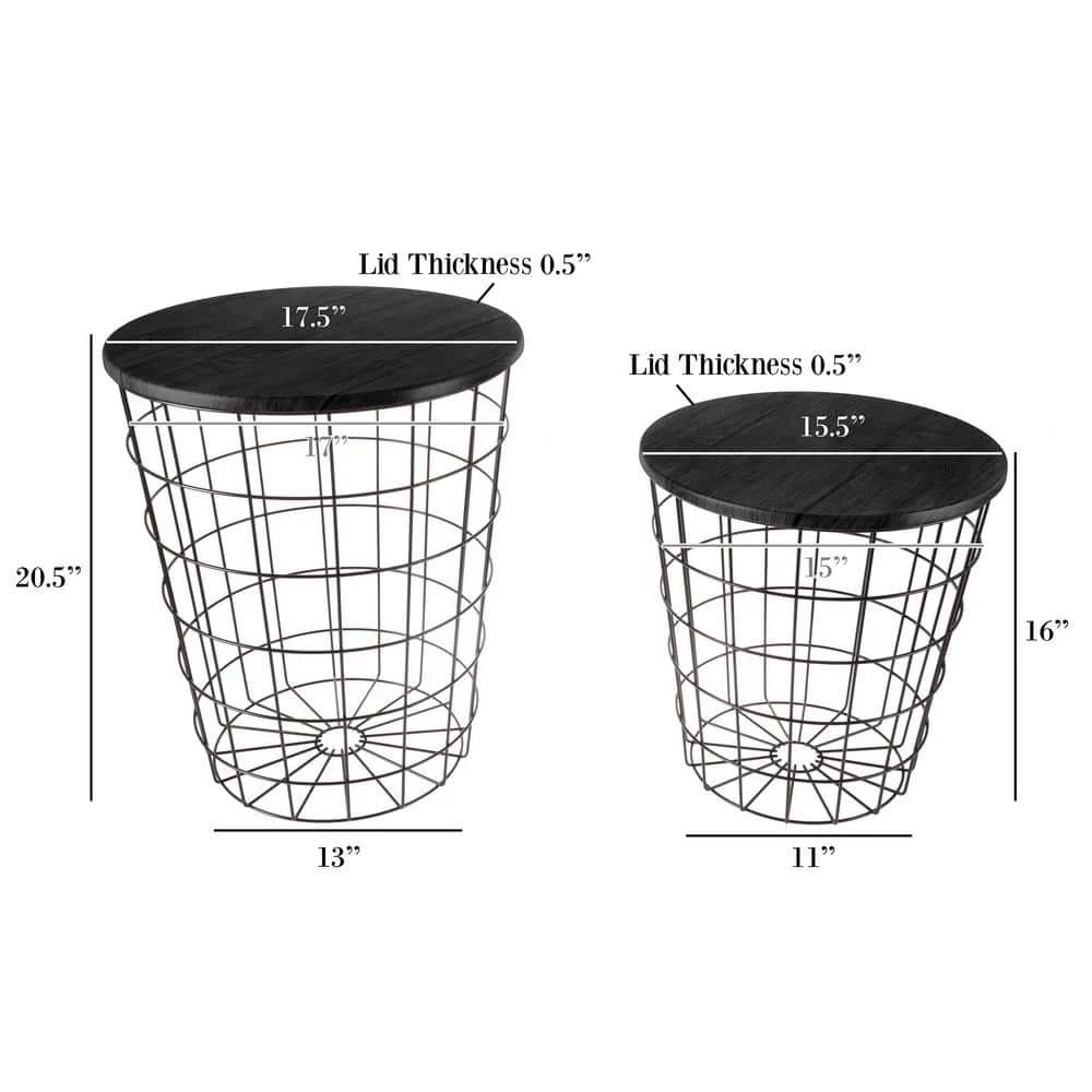 Easily enhance your decor while gaining a practical storage solution with the Nesting Table Set by Lavish Home. The two decorative end tables are designed to offer an effective storage option to any living room, bedroom, office, or small space and act as a functional alternative to traditional end tables! The accent tables feature a removable wooden lid and storage basket to keep books, blankets, board games, toys, and more. The beautiful square grid pattern metal basket paired with the woodgrain look on the veneer lid can instantly upgrade your space and perfectly complement any rustic, modern, farmhouse, vintage, or industrial decor!