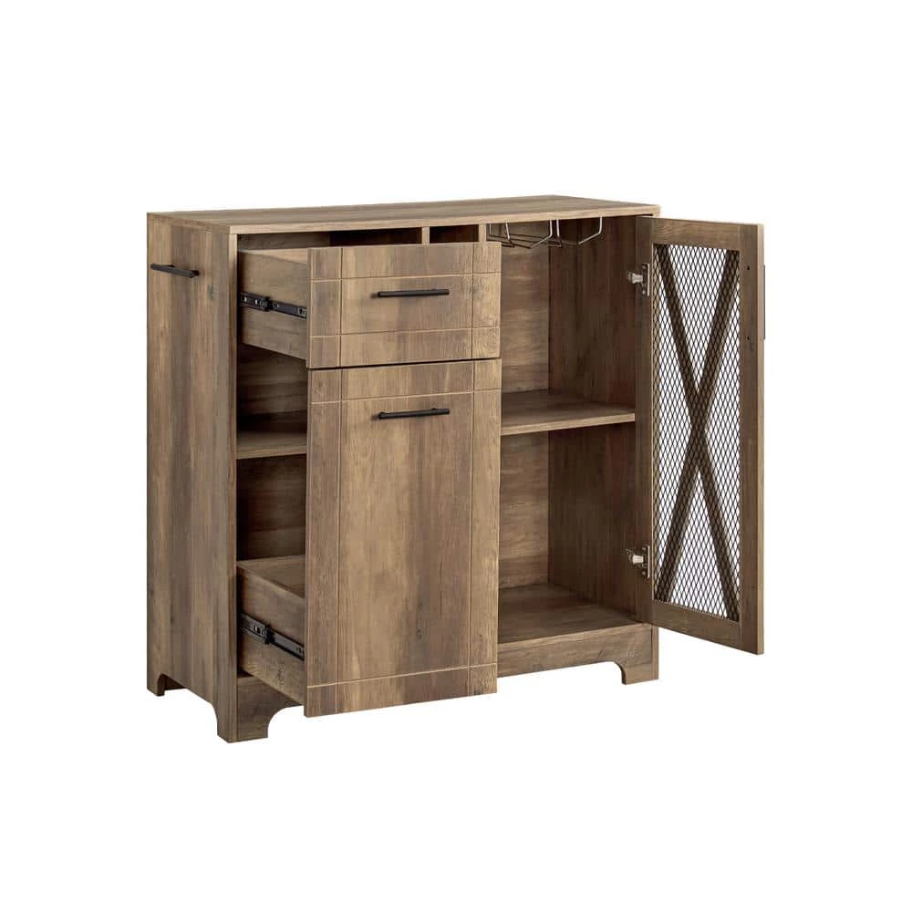 - Design: this attractive bar cabinet with wire mesh doors in an attractive reclaimed barnwood finish maximizes your living space and blends well with any modern decor