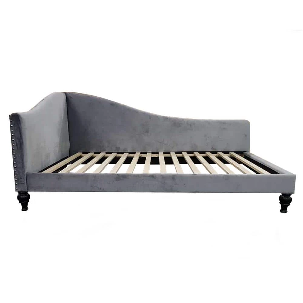 A beautiful plush and comfortable day bed for the day and night. Perfect for seating while watching a movie or lounging on a lazy Sunday. Have guests over to sleep on the fluffy cushions. The gorgeous fabric upholstery comes in gray and has a silver border along the seam. It adds an elegant touch to this sophisticated design. The bed is set-upon four black finished molded legs that bring the whole day bed together.