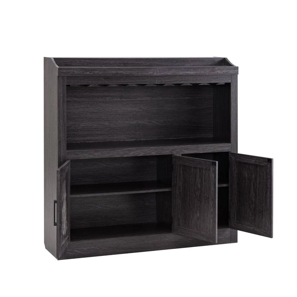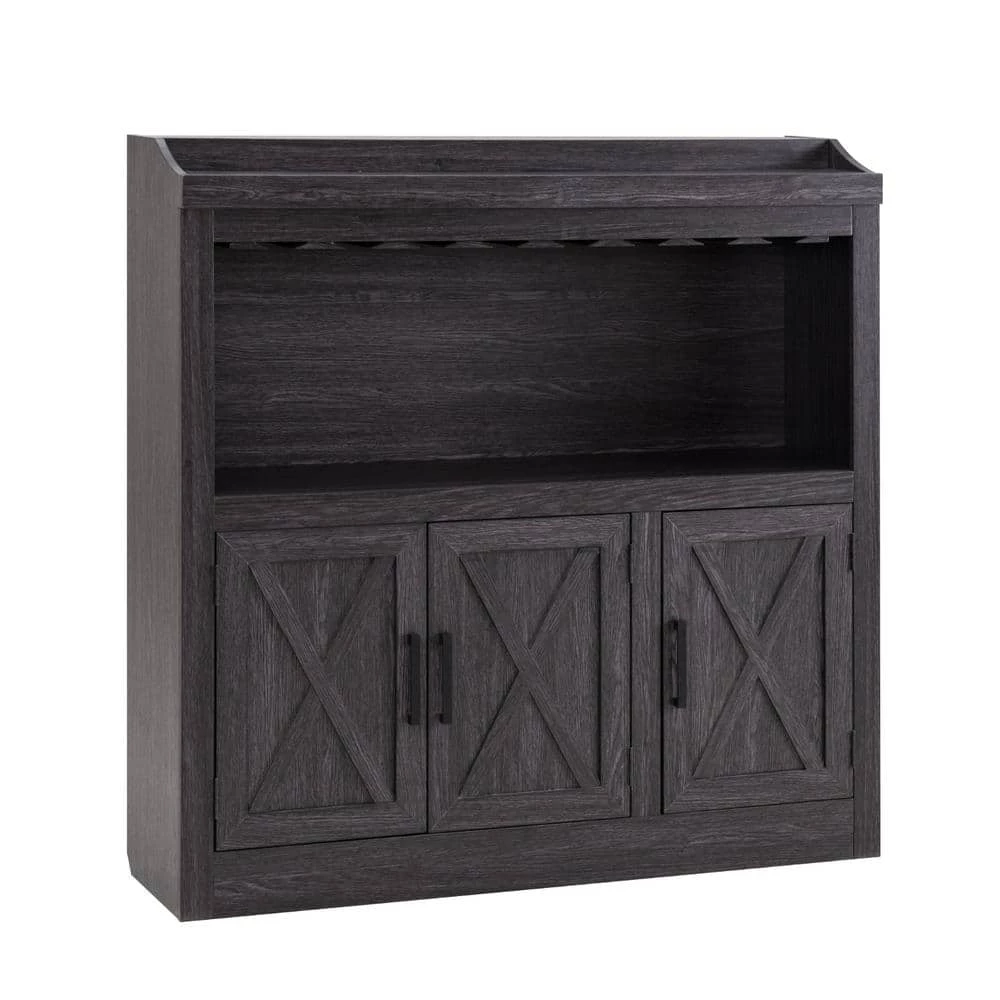 If you are looking to add class to your modern living area, this bar cabinet is a fabulous choice. It will both save you space and maximize style. At the top of the unit is a hanging rack for your best stemware, while at the bottom are 3-cabinets with ornate wooden doors, the ideal place to store your selection of beverages. This cabinet will look superb in your lounge or dining area.