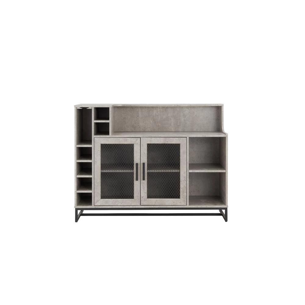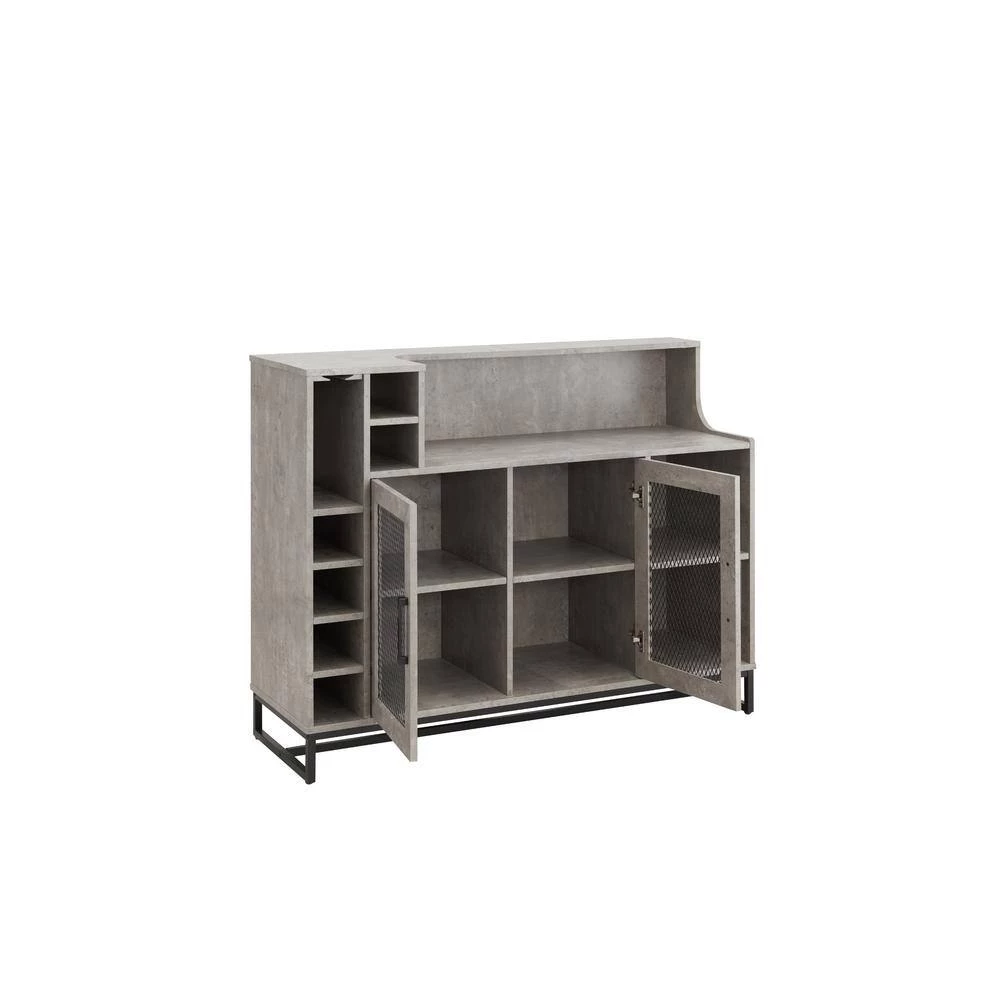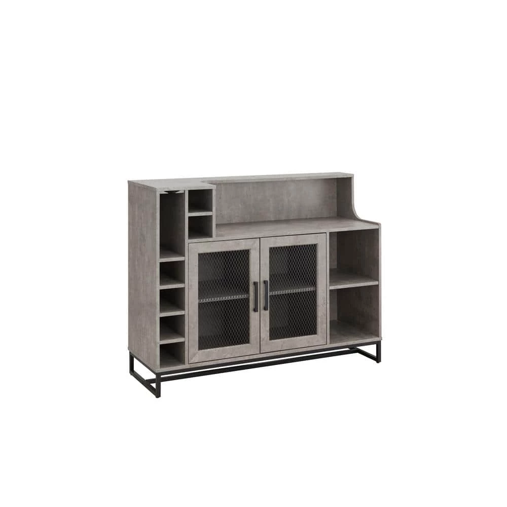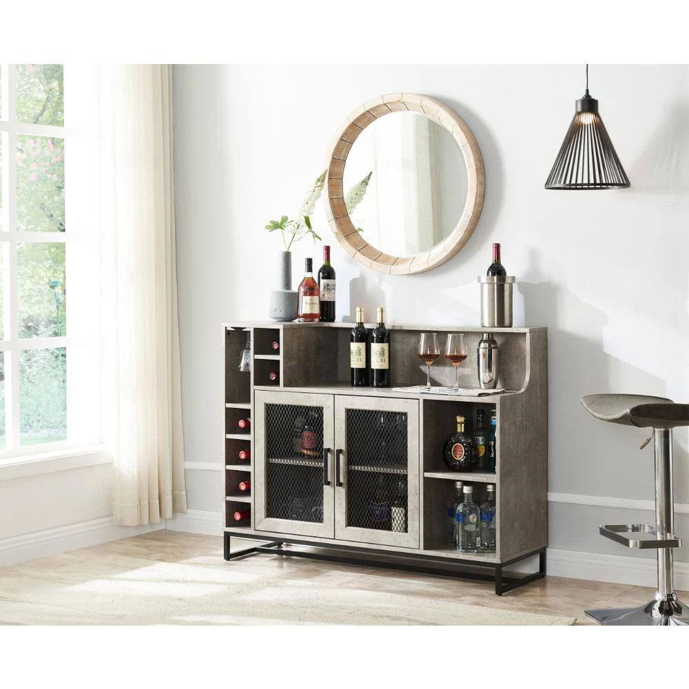 This bar cabinet exudes elegance and style and makes a superb addition to any living room or dining room. The 2 cabinets with glass doors provide ample storage and display space for your beverages, vases, or ornaments. Use this piece of furniture as a coffee station or buffet. Place 6 of your favorite wines on the wine rack and hang and display wine glasses above. The metal base gives this bar cabinet extra stability.