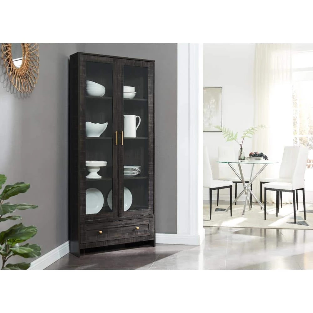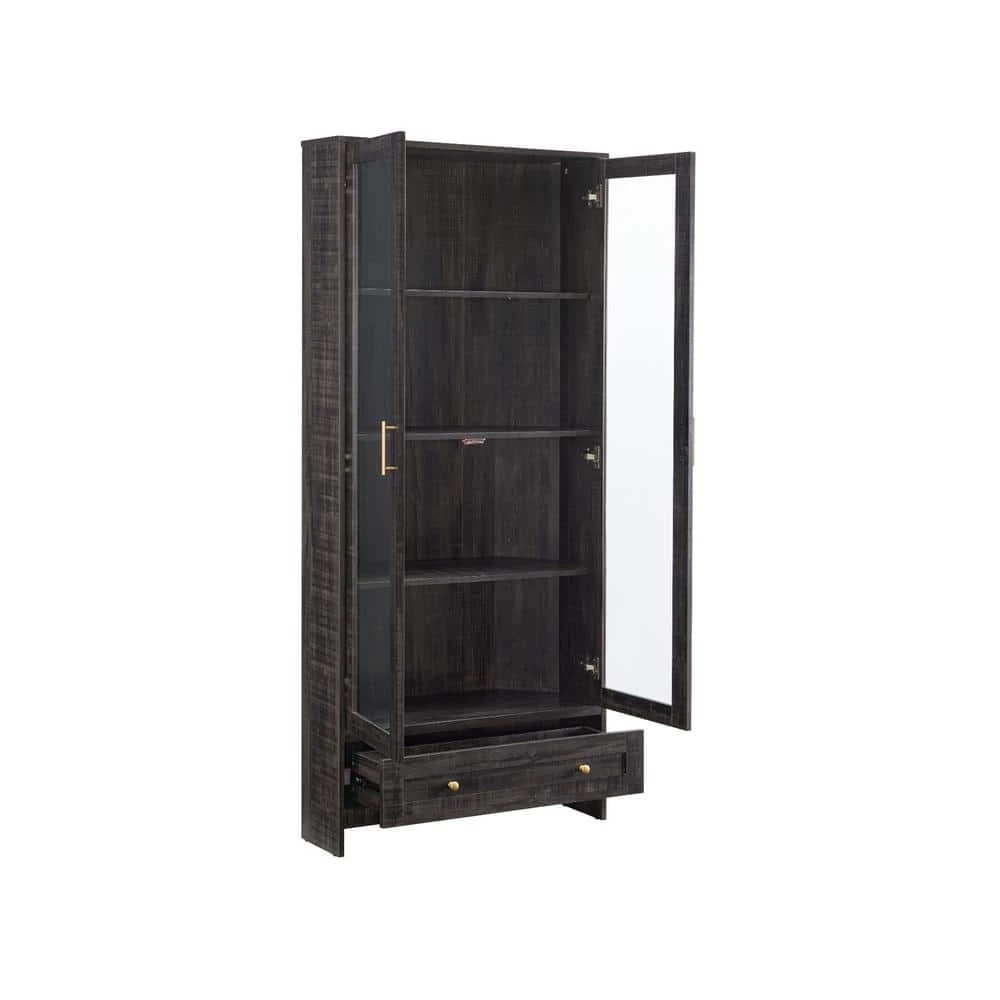 Add classic elegance to your home with this door display cabinet in black finish. The combination transparent and opaque storage lets you customize this unit to your needs so you can store and protect dishwear, books, décor items and even China in the same unit. Made of MDF, this is a cabinet built to last.