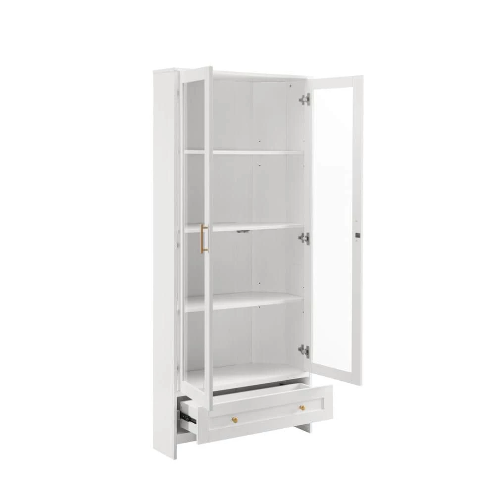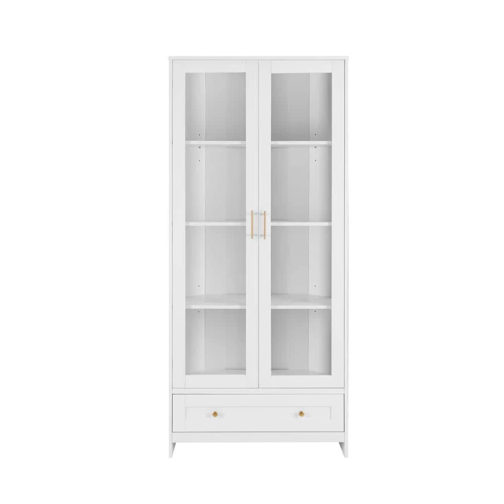 Add classic elegance to your home with this door display cabinet in white finish. The combination transparent and opaque storage lets you customize this unit to your needs so you can store and protect dishwear, books, décor items and even China in the same unit. Made of MDF, this is a cabinet built to last.