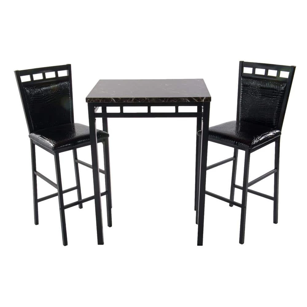 The Home Source Black Eric 3-piece Bistro Set is the perfect multi-purpose solution for practically any space. The table has a beautiful faux marble finish that easily wipes clean and looks effortlessly elegant. Whether you’re looking for extra seating in your breakfast nook or dining room or want to use it as a console table or entertaining station, the Home Source 3-Piece pub Dining Set is sure to become a favorite piece in your home.
