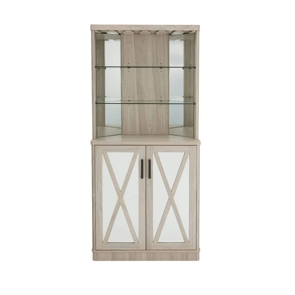 Home Source White Oak Corner Bar Cabinet with Mirrored Panels by Home Source Industries