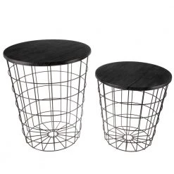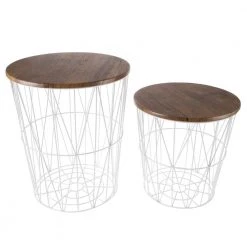 15.75 In. Brown Square Wood Top Wire Basket Nesting End Table with Storage Set of 2 by Lavish Home