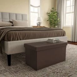 Brown Faux Leather Large Foldable Storage Bench Ottoman by Lavish Home
