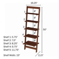50 in. Walnut Wood 5-shelf Ladder Bookcase with Open Back by Lavish Home