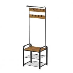 Rustic Brown Woodgrain and Black Farmhouse Style Entryway Hall Tree Coat Rack by Lavish Home