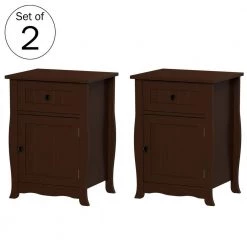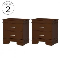 15.5 in. Dark Brown Rectangle MDF Wood Side Table With 2 Drawers (Set of 2) by Lavish Home